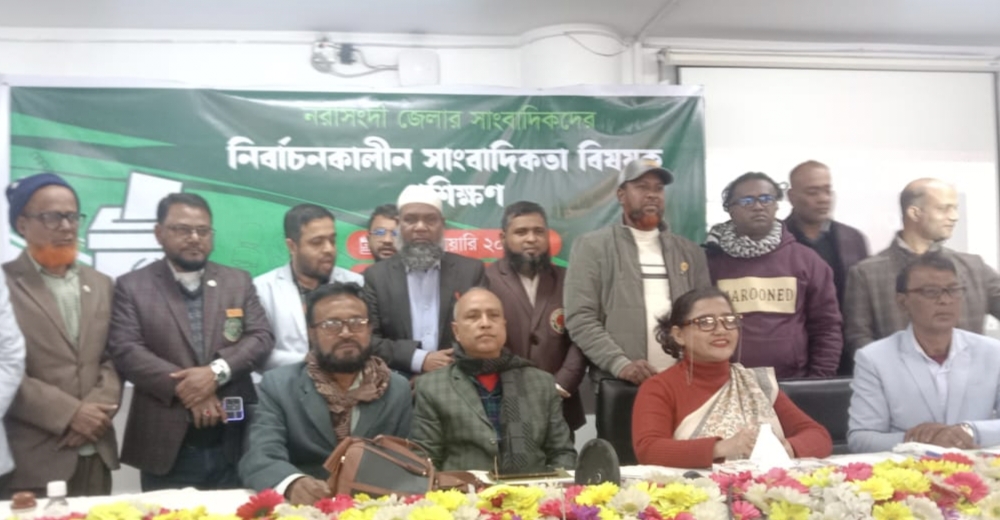 নরসিংদী জেলায় কর্মরত প্রিন্ট ও ইলেক্ট্রনিক মিডিয়ার সাংবাদিকদের নিয়া নির্বাচনকালীন সাংবাদিকতা বিষয়ক দুই দিনব্যাপী প্রশিক্ষণ সম্পন্ন হয়েছে। প্রেস ইনস্টিটিউট বাংলাদেশ (পিআইবি) ও তথ্য ও সম্প্রচার মন্ত্রণালয়ের উদ্যোগে এ প্রশিক্ষণের আয়োজন করা হয়।